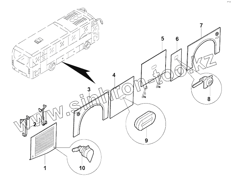 Каталог запасных частей к технике: King Long Автобус XMQ-6800Y. RIGHT SIDE BIN GATE