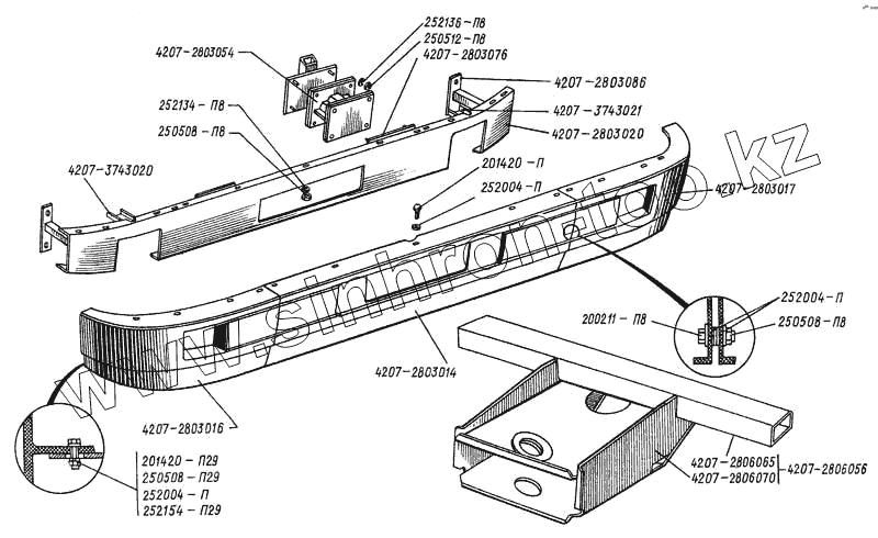 Каталог запасных частей к технике: ЛАЗ 4207. Буфер передний