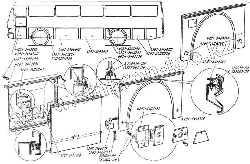Каталог запасных частей к технике: ЛАЗ 4207. Дверки