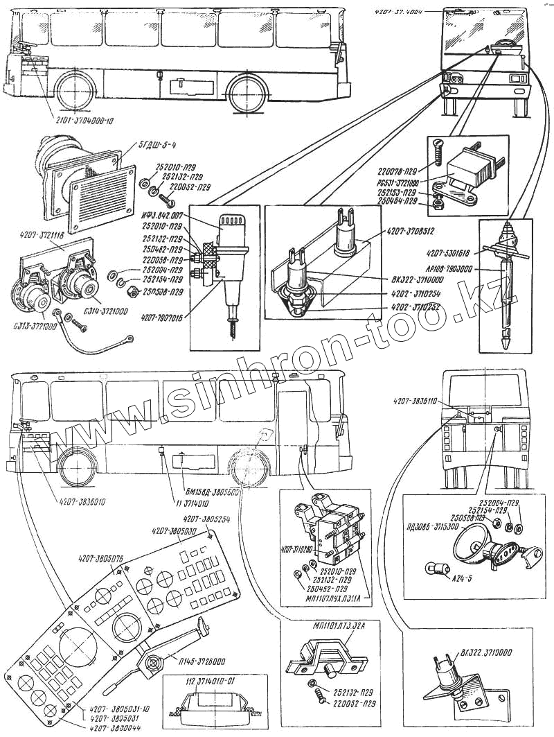 Каталог запасных частей к технике: ЛАЗ 4207. Электрооборудование и радиооборудование