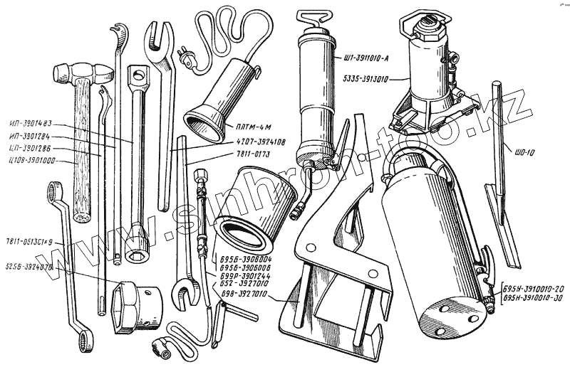 Каталог запасных частей к технике: ЛАЗ 4207. Инструмент и принадлежности в багажнике