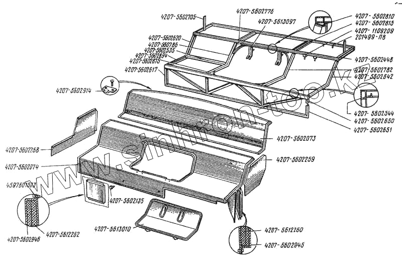 Каталог запасных частей к технике: ЛАЗ 4207. Каркас мотоотсека с обивкой