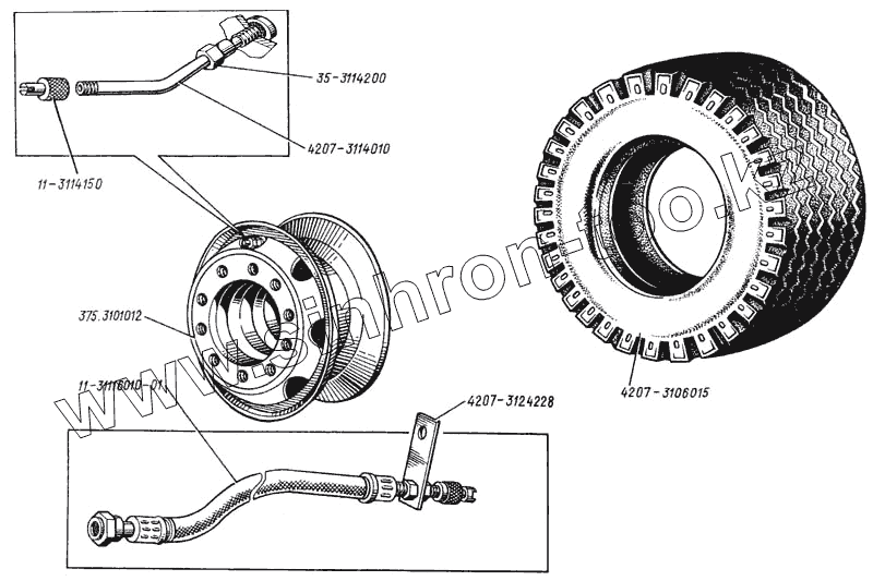 Каталог запасных частей к технике: ЛАЗ 4207. Колесо, удлинитель вентиля
