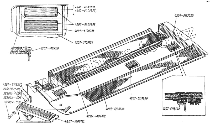 Каталог запасных частей к технике: ЛАЗ 4207. Ковры, подножки, люки