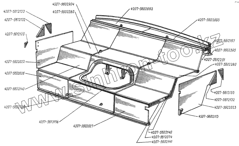 Каталог запасных частей к технике: ЛАЗ 4207. Нижние панели обшивки мотоотсека