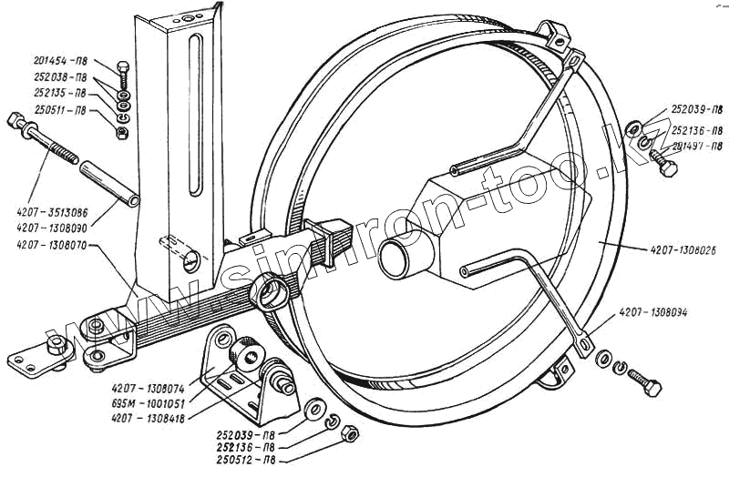 Каталог запасных частей к технике: ЛАЗ 4207. Обод с натяжным устройством