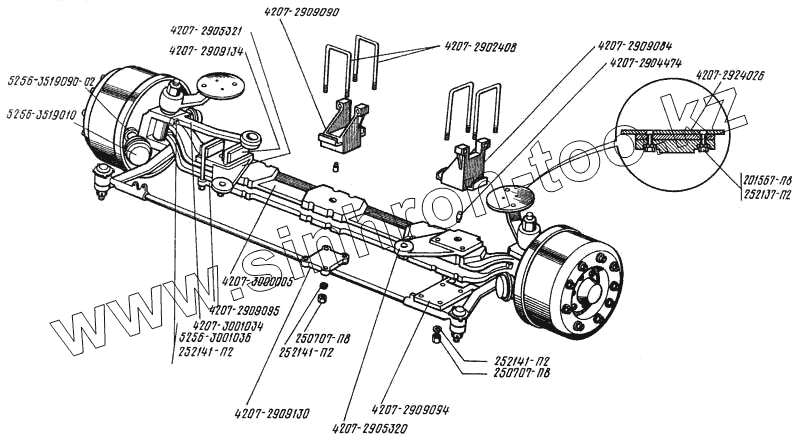 Каталог запасных частей к технике: ЛАЗ 4207. Ось передняя