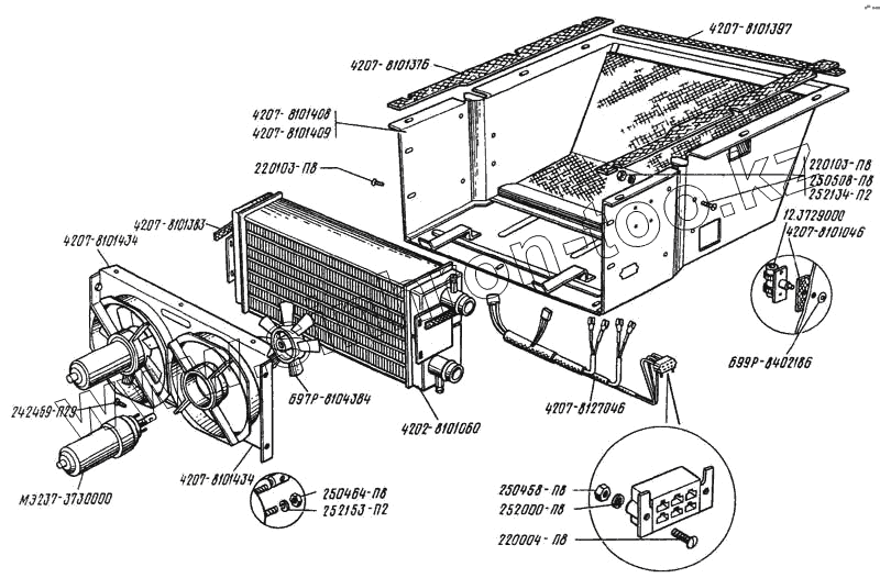 Каталог запасных частей к технике: ЛАЗ 4207. Отопитель салона (номенклатура отсутствует)
