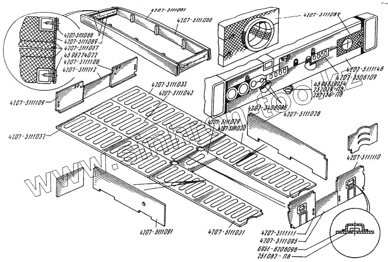 Каталог запасных частей к технике: ЛАЗ 4207. Панель багажников отсеков, уплотнение