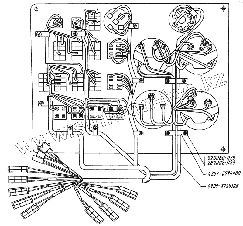 Каталог запасных частей к технике: ЛАЗ 4207. Панель щитка приборов правая. Монтажная схема