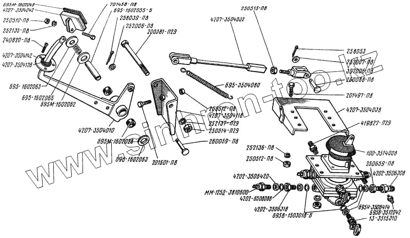 Каталог запасных частей к технике: ЛАЗ 4207. Привод тормозного крана