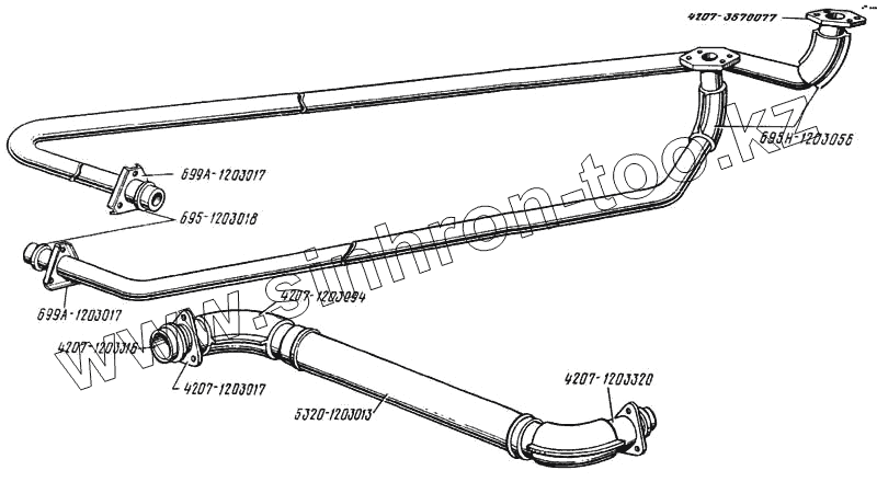 Каталог запасных частей к технике: ЛАЗ 4207. Трубопроводы с кожухом и кронштейнами