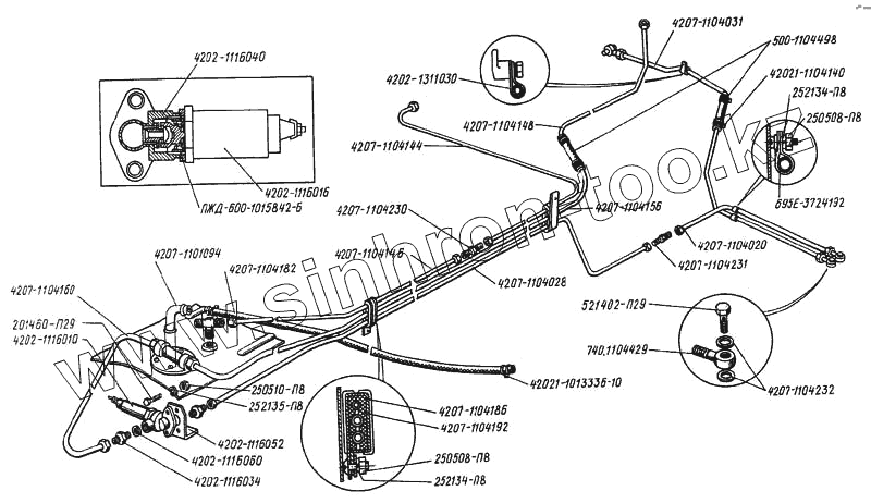 Каталог запасных частей к технике: ЛАЗ 4207. Трубопроводы системы питания