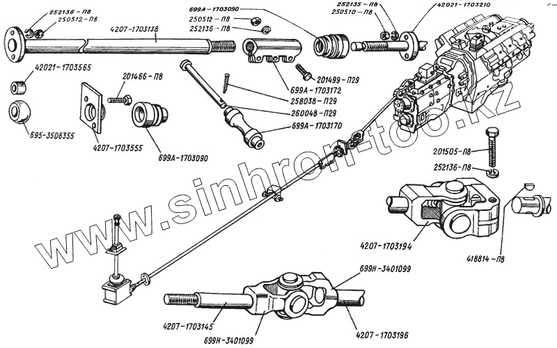 Каталог запасных частей к технике: ЛАЗ 4207. Тяга управления переключения передач