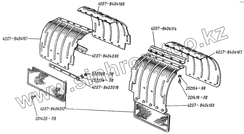 Каталог запасных частей к технике: ЛАЗ 4207. Установка брызговиков задних колес