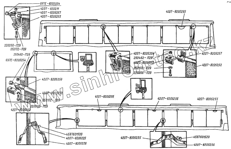 Каталог запасных частей к технике: ЛАЗ 4207. Установка занавесок