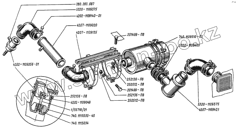 Каталог запасных частей к технике: ЛАЗ 4207. Воздушный фильтр