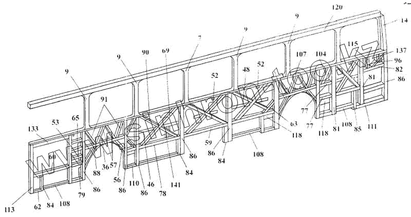 Каталог запасных частей к технике: ЛАЗ 5252. Каркас левой боковины