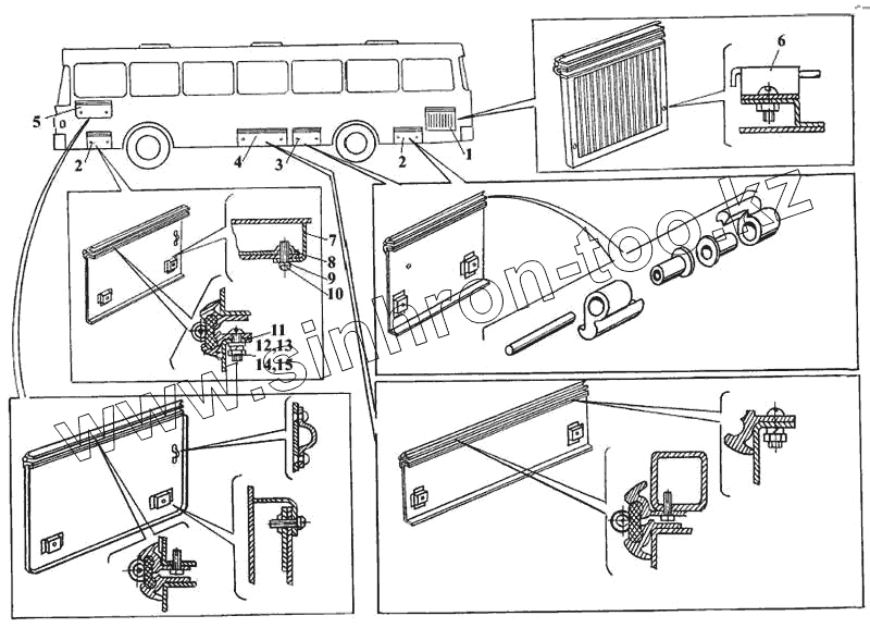 Каталог запасных частей к технике: ЛАЗ 5252. Люки боковины