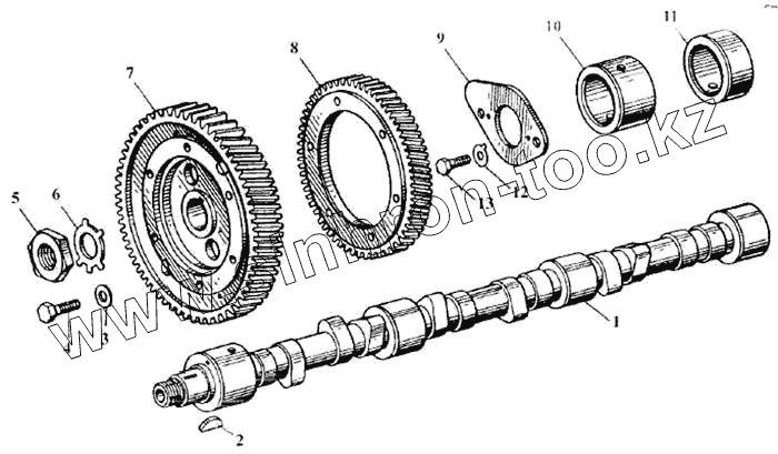 Каталог запасных частей к технике: ЛАЗ 5252. Распределительный вал двигателя ЯМЗ-236НЕ и ЯМЗ-236А