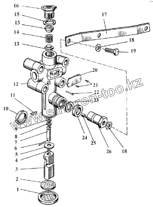 Каталог запасных частей к технике: ЛАЗ 5252. Регулятор положения кузова задней подвески