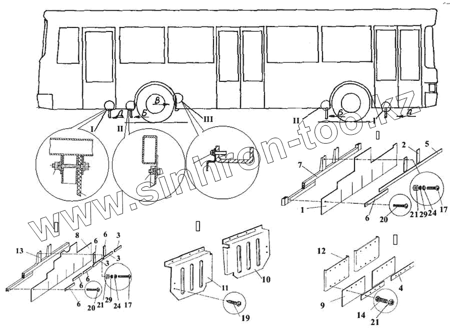 Каталог запасных частей к технике: ЛАЗ 5252. Установка брызговиков