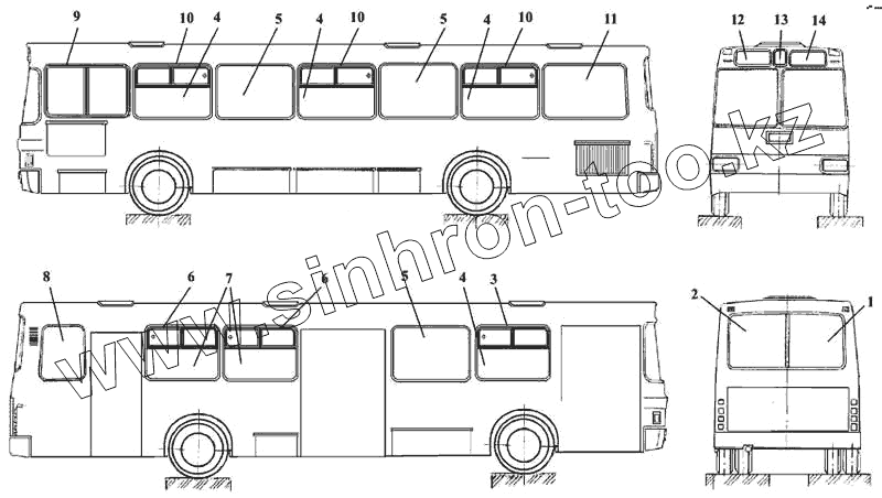 Каталог запасных частей к технике: ЛАЗ 5252. Установка окон