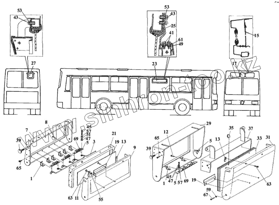 Каталог запасных частей к технике: ЛАЗ 5252. Установка рейсоуказателей маршрута
