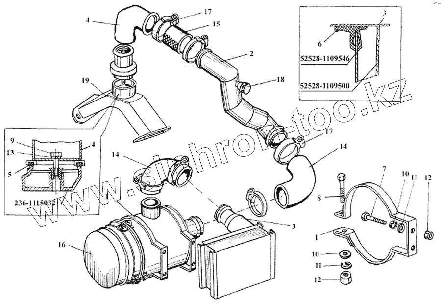 Каталог запасных частей к технике: ЛАЗ 5252. Установка системы питания двигателя ЯМЗ-236А воздухом