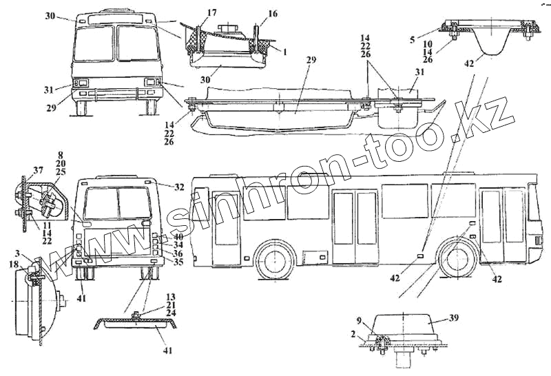 Каталог запасных частей к технике: ЛАЗ 5252. Внешние световые приборы