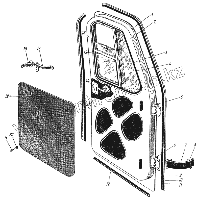 Каталог запасных частей к технике: ЛАЗ 695Б. Дверь кабины водителя