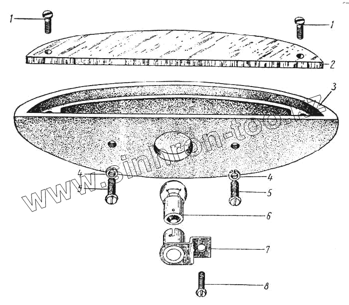 Каталог запасных частей к технике: ЛАЗ 695Б. Фонарь освещения номерного знака