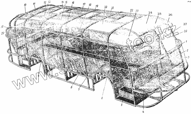 Каталог запасных частей к технике: ЛАЗ 695Б. Каркас и обивка кузова автобуса