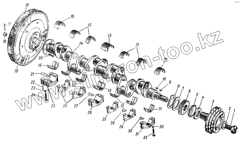 Каталог запасных частей к технике: ЛАЗ 695Б. Коленчатый вал и маховик
