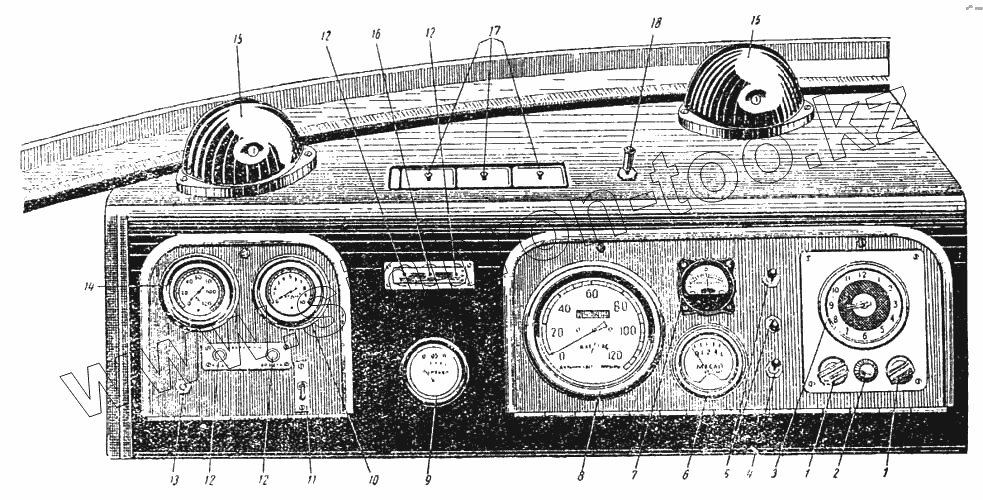 Каталог запасных частей к технике: ЛАЗ 695Б. Панель приборов
