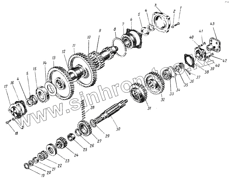 Каталог запасных частей к технике: ЛАЗ 695Б. Промежуточный и вторичный валы коробки передач