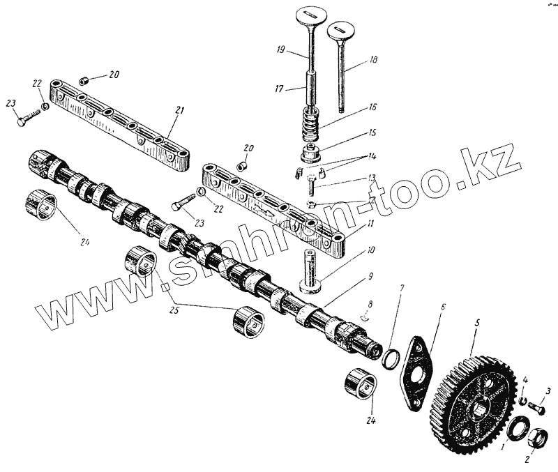 Каталог запасных частей к технике: ЛАЗ 695Б. Распределительный вал, клапаны и толкатели