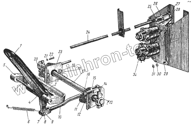 Каталог запасных частей к технике: ЛАЗ 695Б. Тормозная педаль и привод