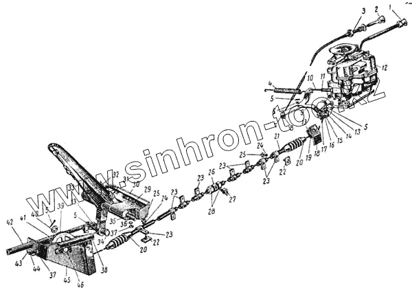 Каталог запасных частей к технике: ЛАЗ 695Б. Управление карбюратором МКЗ-К84