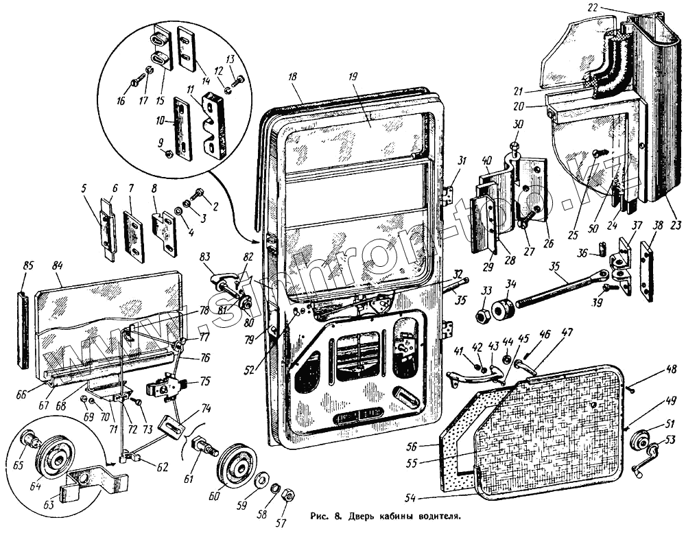 Каталог запасных частей к технике: ЛАЗ 695Н. Дверь кабины водителя