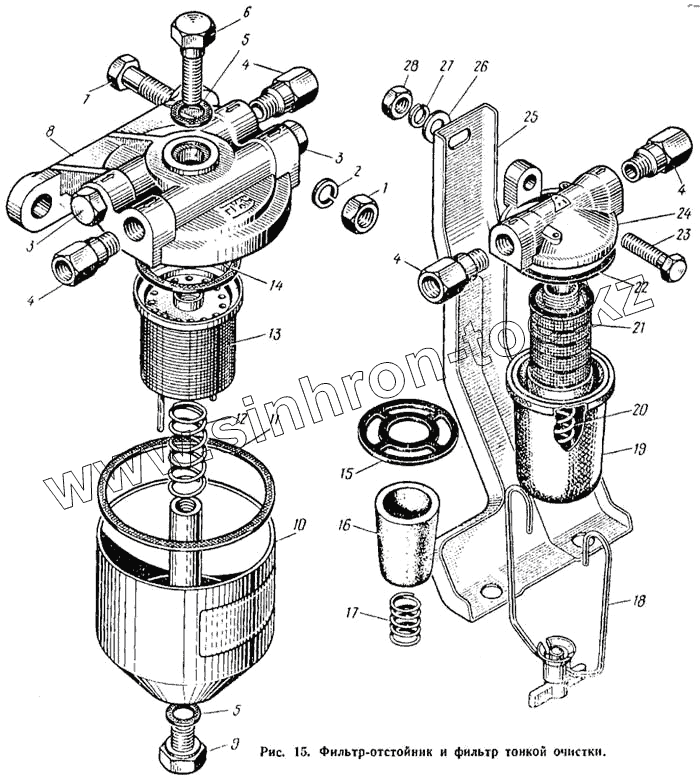 Каталог запасных частей к технике: ЛАЗ 695Н. Фильтр-отстойник и фильтр тонкой очистки