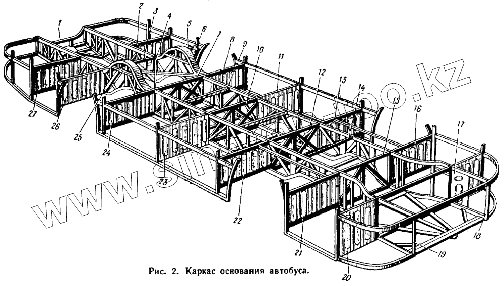 Каталог запасных частей к технике: ЛАЗ 695Н. Каркас основания автобуса