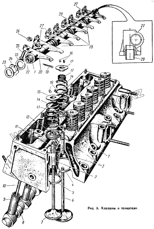 Каталог запасных частей к технике: ЛАЗ 695Н. Клапаны и толкатели