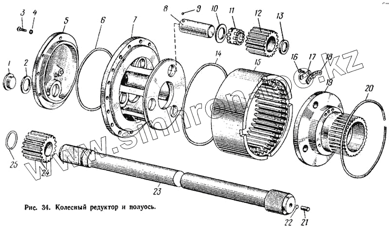 Каталог запасных частей к технике: ЛАЗ 695Н. Колесный редуктор и полуось