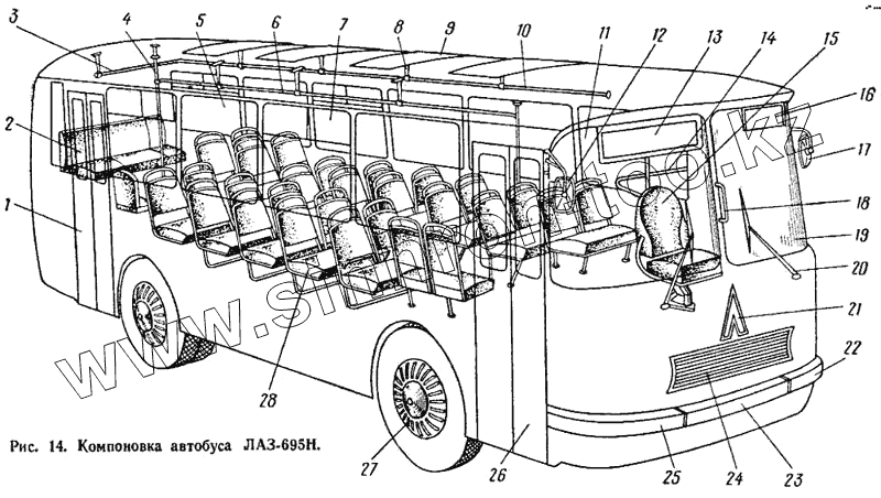 Каталог запасных частей к технике: ЛАЗ 695Н. Компоновка автобуса ЛАЗ-695Н