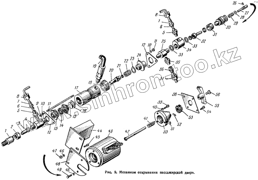 Каталог запасных частей к технике: ЛАЗ 695Н. Механизм открывания пассажирской двери