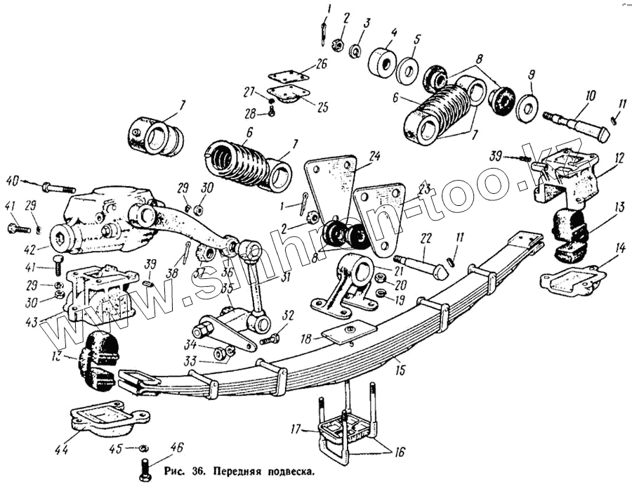 Каталог запасных частей к технике: ЛАЗ 695Н. Передняя подвеска