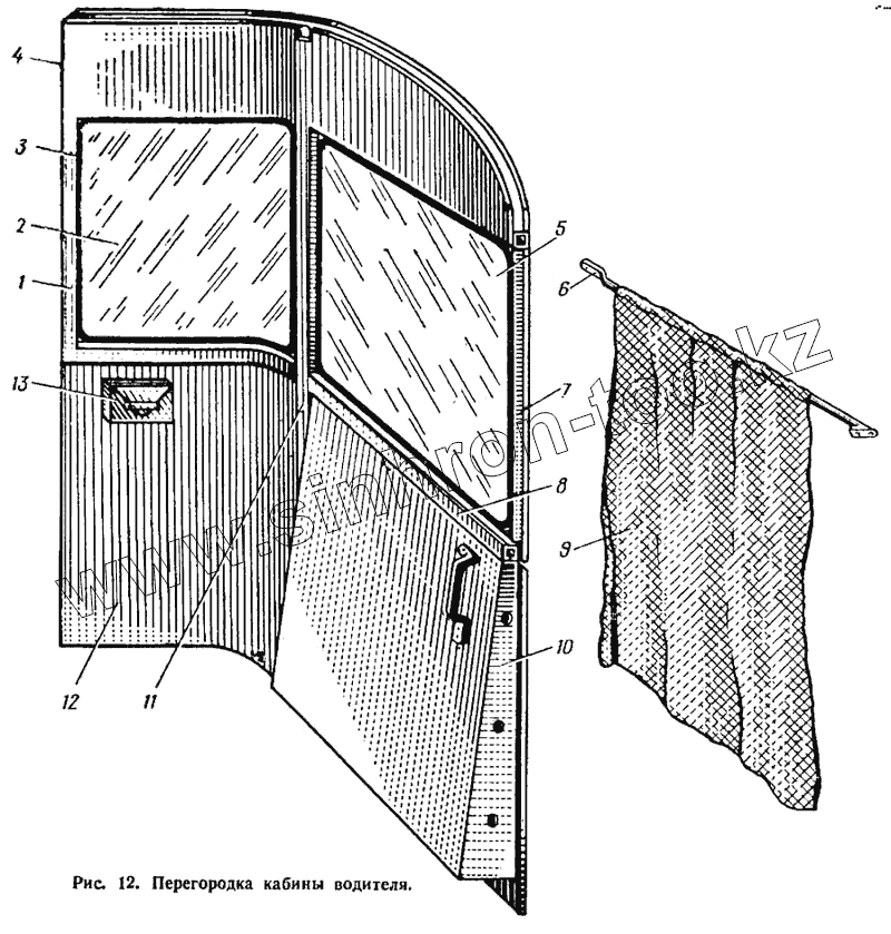 Каталог запасных частей к технике: ЛАЗ 695Н. Перегородка кабины водителя