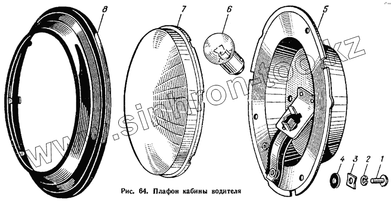 Каталог запасных частей к технике: ЛАЗ 695Н. Плафон кабины водителя