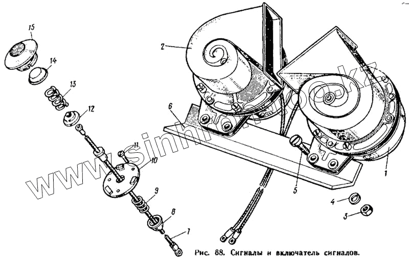Каталог запасных частей к технике: ЛАЗ 695Н. Сигналы и включатель сигналов